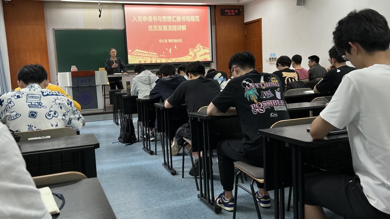 穆礼富以解读《中国共产党发展党员工作细则》为重点,向同学们介绍了发展党员工作的重要性。他强调,同学们要认真学习党章,加深对党的性质、宗旨、任务、党员的权力和义务等基本知识的理解,对党忠诚老实,务必向党组织反映真实情况,并且在书写入党材料时应结合自己的学习、工作、思想实际谈谈对党的认识、自身存在哪些方面的不足、怎样争取加入中国共产党等,切勿通讯报道和记流水账。