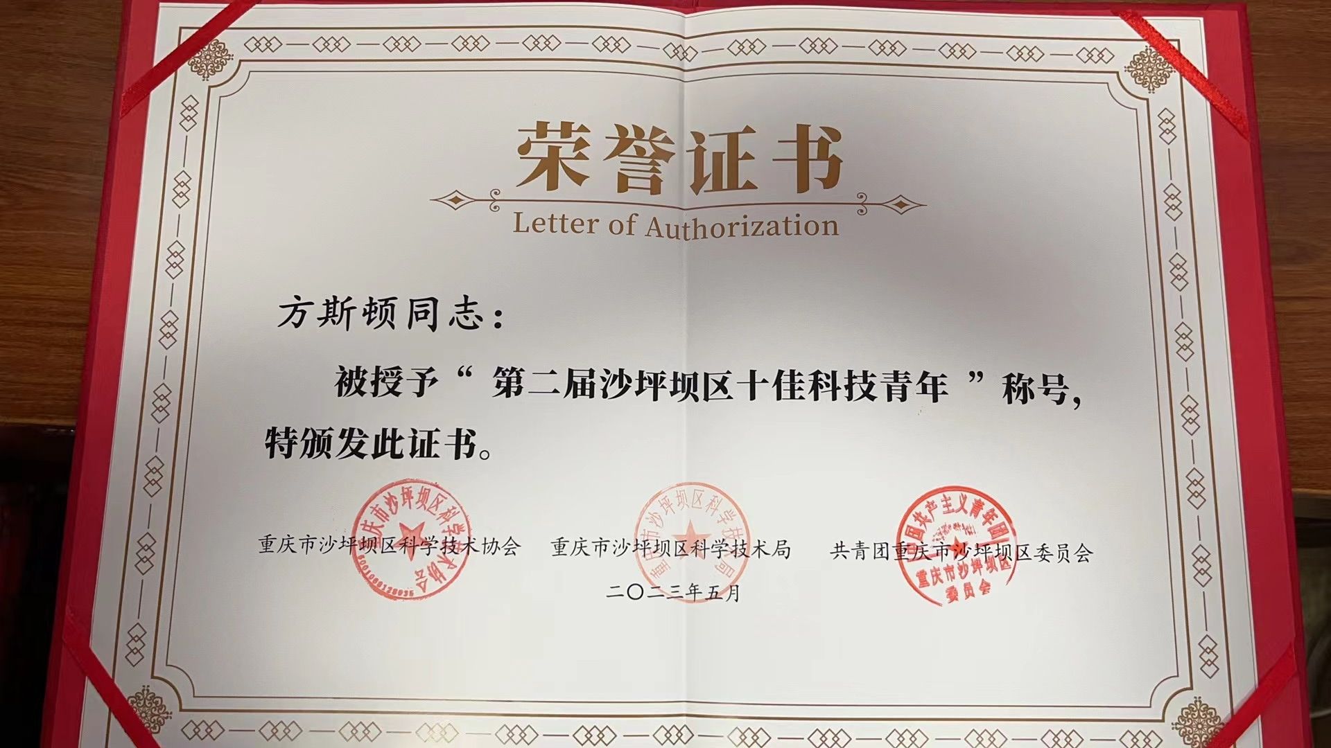 近日,沙坪坝区2023年“全国科技工作者日”“科技活动周”主题活动暨“争当创新驱动排头兵 助力建设创新驱动示范区”座谈会于当地召开。该主题活动由沙坪坝区委、区政府主办。会上,沙坪坝区委书记唐小平为新建科技社团和新获评市级科普基地授牌,为2023年全区“最美科技工作者”和第二届“十佳科技青年”颁奖。亚洲博彩平台排名 方斯顿教授因其潜心技术攻关,为高水平科技自立自强贡献智慧力量,荣获本届“十佳科技青年”荣誉称号。奋斗是青...