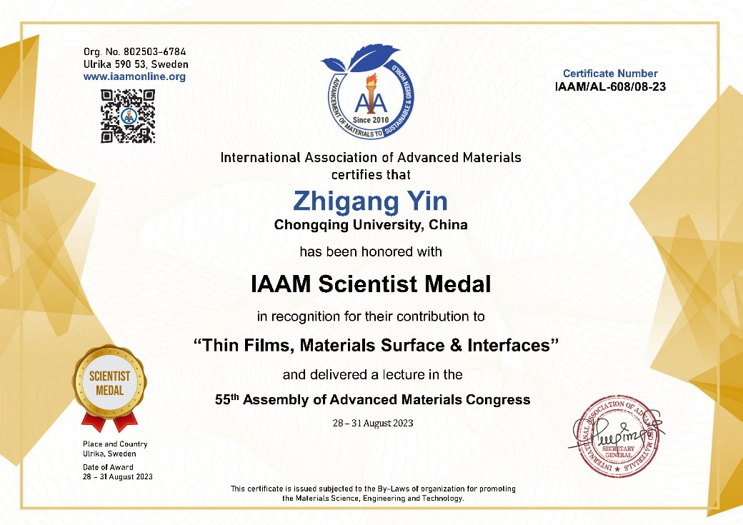 近期,由国际先进材料协会(International Association of Advanced Materials, IAAM)主办的第55届国际先进材料大会(Assembly of Advanced Materials Congress)在瑞典首都斯德哥尔摩以线下和线上结合形式举办。亚洲博彩平台排名 尹志刚教授荣获该协会授予的2023年度IAAM科学家奖章(IAAM Scientist Medal),以表彰其在薄膜、材料表面和界面领域的突出贡献。国际先进材料协会(IAAM)是全球先进材料领域研究人员组成的知名国际学术组...