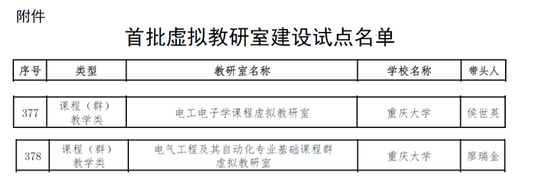 廖瑞金教授牵头的“电气工程及其自动化专业基础课程群虚拟教研室”、侯世英教授牵头的“电工电子学课程虚拟教研室”项目获批立项。