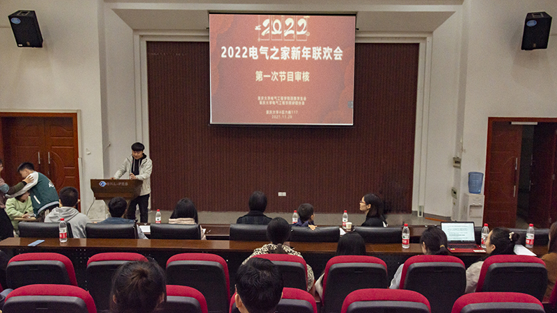 2022年新年联欢晚会第一次节目审核在重庆大学第六教学楼6117顺利举行。本次共有13个节目参与审核,节目主要以歌舞为主,同时还包括魔术、相声、诗朗诵等不同类型的表演。