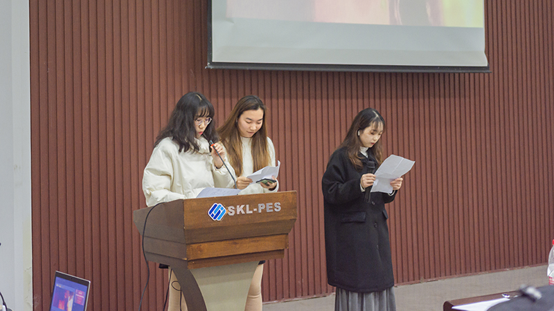 “生命是,用来燃烧的东西;死亡是,见证生命的东西”,于莉、杨小林和黄澳丽三位同学朗诵的《诗》为我们勾勒出作为献身者的父辈们的动人形象。