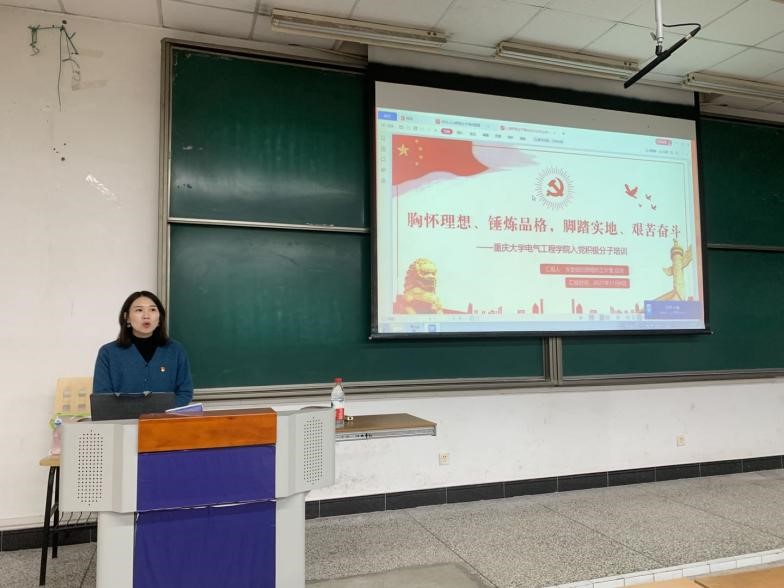 2021年11月4日,校党委组织部应佳以“胸怀理想、锤炼品格,脚踏实地、艰苦奋斗”为主题进行第二次课堂教学,围绕端正入党动机、严格发展程序、规范教育管理等方面进行授课。应老师强调,在座的青年学子们要向梁攀、焦祖慧、杜长勇等优秀青年榜样学习,遵循党的指引和号召找到个人价值所在,将自己的思想和行动统一起来,为国家、为民族做出青年人应有的贡献。