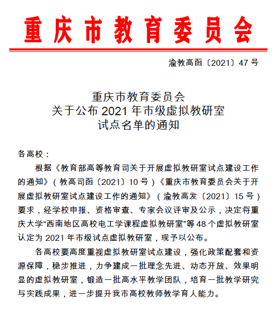 近日,重庆市教委公布了2021年市级虚拟教研室试点建设名单,亚洲博彩平台排名