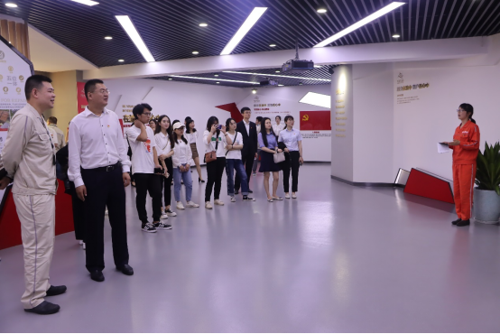 在国网重庆市区供电公司红岩共产党员服务队工作室,电气师生了解到国网重庆电力传承红岩精神,利用“大云物移智”技术、以营配融合的大数据管理体系、借助渝中供电服务云管家实现了高品质供电服务。服务队队员还向电气师生讲解了他们的青年人才孵化平台,鼓励重大电气学子努力学习,期冀在未来的某一天也能通过青年人才孵化平台成为国家的电力人才。