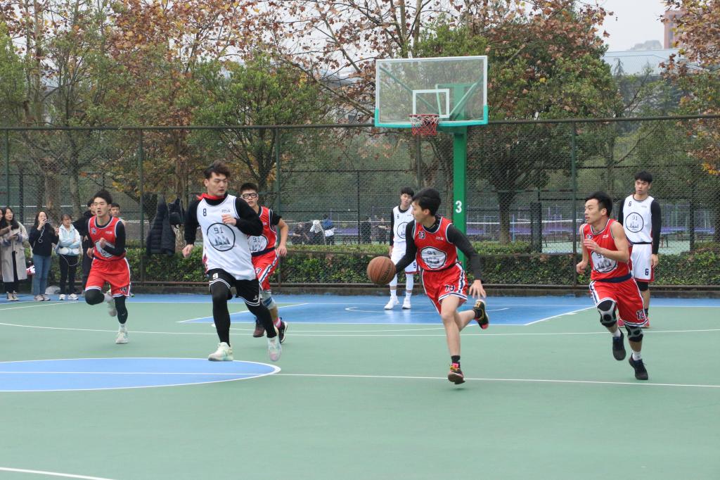 11月26日16:30,校园篮球赛决赛第一场在虎溪校区梅园篮球场举行。临“篮”不慑,电气男篮在首次交锋中表现出色。第8分钟,队长李立志连过三人,以一记漂亮的上篮赢得全场欢呼;第23分钟,23号曾正一晃开防守,回转跳投又下一城;第27分钟,21号成诺以一记三分打出了电气学院的气势。最终比分47:84。