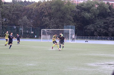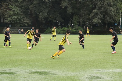 较以往阵势调整了比赛首发阵容,在面对生物资安联队开球的局势展现出了卫冕冠军的实力。但生物资安联队作为D组另一支保持不败的球队,其后防线也是严如铁桶,成功抵挡住了电气学院的数次进攻。第30分钟时,生物资安拿到单刀球,门将李彦青迅速精准地扑住球,稳住了比赛局势。上半场双方势均力敌,虽各有进攻,但都未能成功破门。