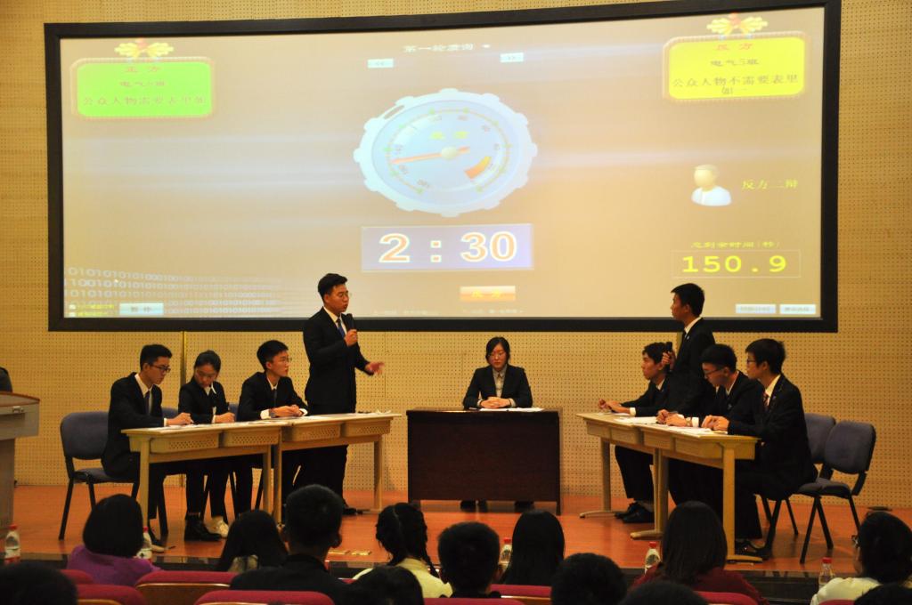 紧接着由反方二辩质询正方一辩,反方二辩一开始就展开了猛烈的攻势,步步紧逼。但正方一辩也没有因此而慌了手脚,以退为进,没有落于下风。随后便是正方进行反击,不过反方二辩步步为营,也没有在言语上示弱。在双方二辩申论结束后,便是双方四辩精彩的对辩环节,辩手们唇枪舌战,发言慷慨激昂,没有丝毫退缩的神色。