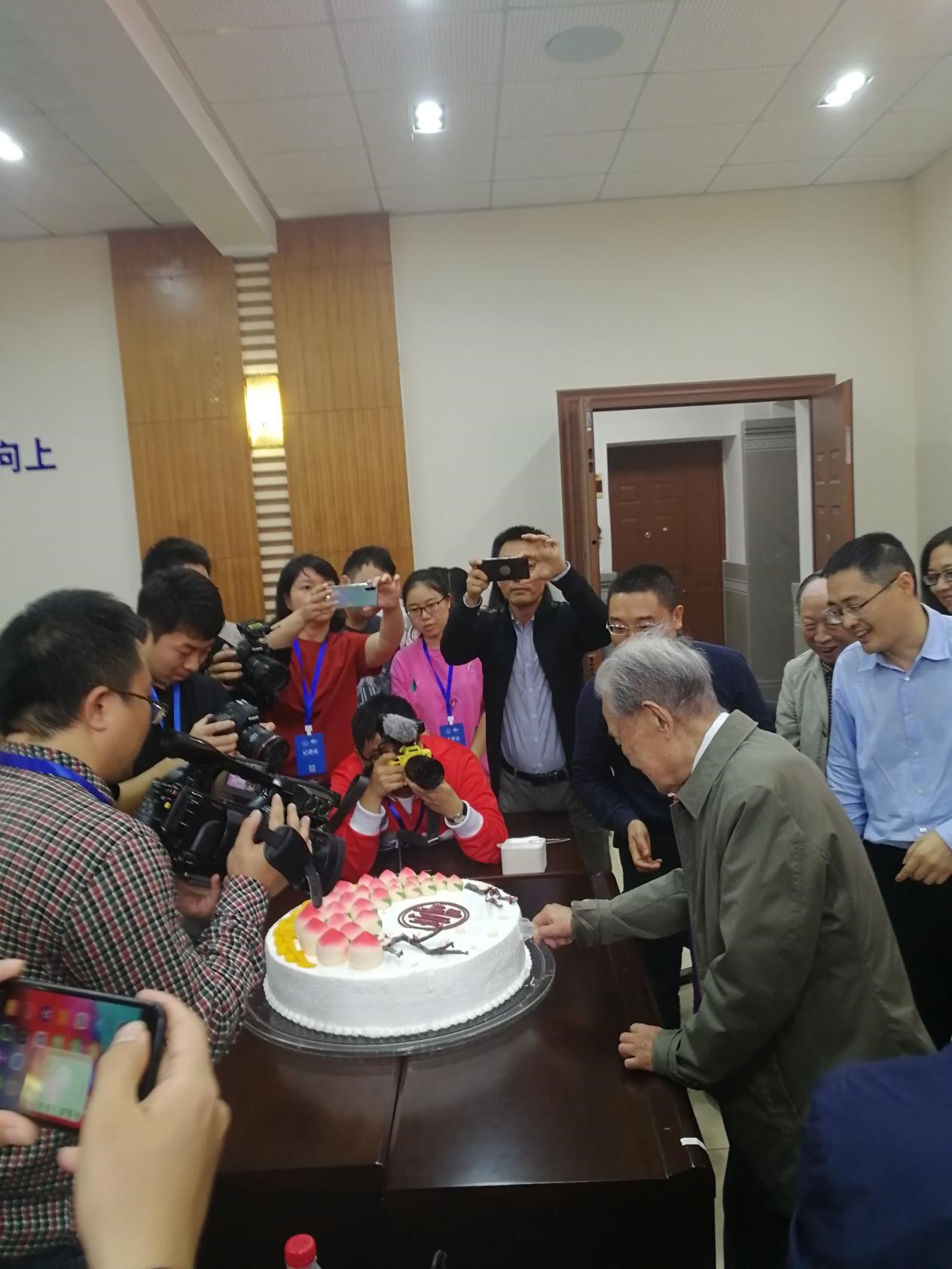 重庆大学成立90周年的当天恰好是校友丁老先生95岁的生日。学院为这位校友特别准备了生日蛋糕,在场所有人共同为这位校友唱起了生日祝福歌,丁老先生十分感动,他感谢了在场的各位校友,希望大家一起共同庆祝母校成立90周年。他说,他们那个年代比较落后,发电机组容量小,居民区、工业区都是按计划用电,他的工作职责就是拉闸限电。现在电气行业发展的又快又好,在全世界都处于领先地位,他感到十分开心。