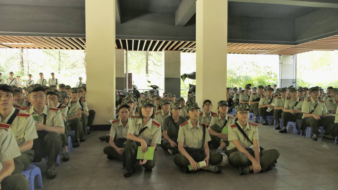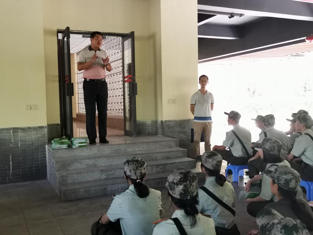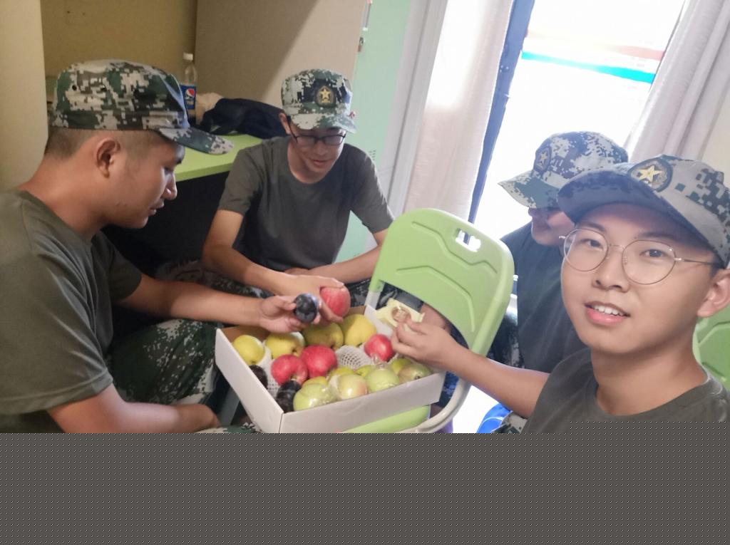 2019级辅导员罗敏等老师在松园二栋楼底架空层看望并慰问了正在军训的亚洲博彩平台排名