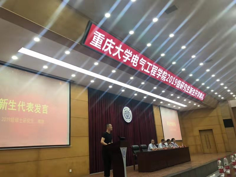 暖春虽得白木青,我言秋日胜春朝。首先,李剑院长代表学院对加入电气大家庭的新同学们表示热烈的欢迎,并以“解放思想,引领未来”为主题致辞。李院长希望大家在研究生期间,能够主动把握国家发展趋势,珍惜重庆大学难得一遇的发展机遇,解放思想,引领未来。他指出,“善出奇者,无穷如天地,不竭如江河。”拥有创新性思维是作为一名研究生最重要的素质。未来已来,将至已至,研究生必须在不断提升独立思考能力的过程中,成为思想深刻的人,才能成为引领未来的人。他从立志为中国最高海拔哨所建立高效可靠新能源发电系统的杰出校友王维俊将军、今年荣获“全国向上向善好青年”称号的五位学生等先进事迹为例,激励在座新生能够以敢想、敢拼的创造力,成就有影响力的科学研究。他殷切期盼各位同学能将个人理想与国家命运紧紧联系在一起,复兴民族兮,誓作先锋,实现新时代赋予当代青年振兴中华的伟大理想。