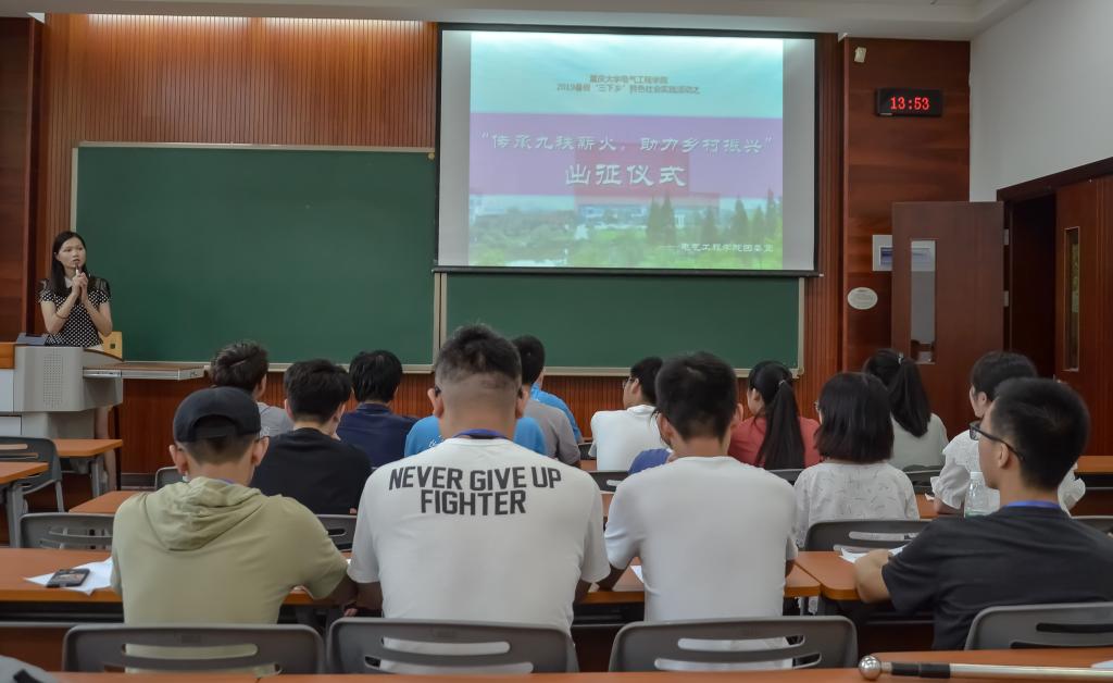 2019年7月14日下午,“电气青春逐梦实践团”于重庆大学虎溪校区D1147举行了“传承九秩薪火,助力乡村振兴”社会实践活动出征仪式,莅临本次出征仪式的有重庆大学电气学院团委书记喻惠,重庆大学电气学院本科兼职辅导员熊雄。出征仪式由郑钦仁同学主持。