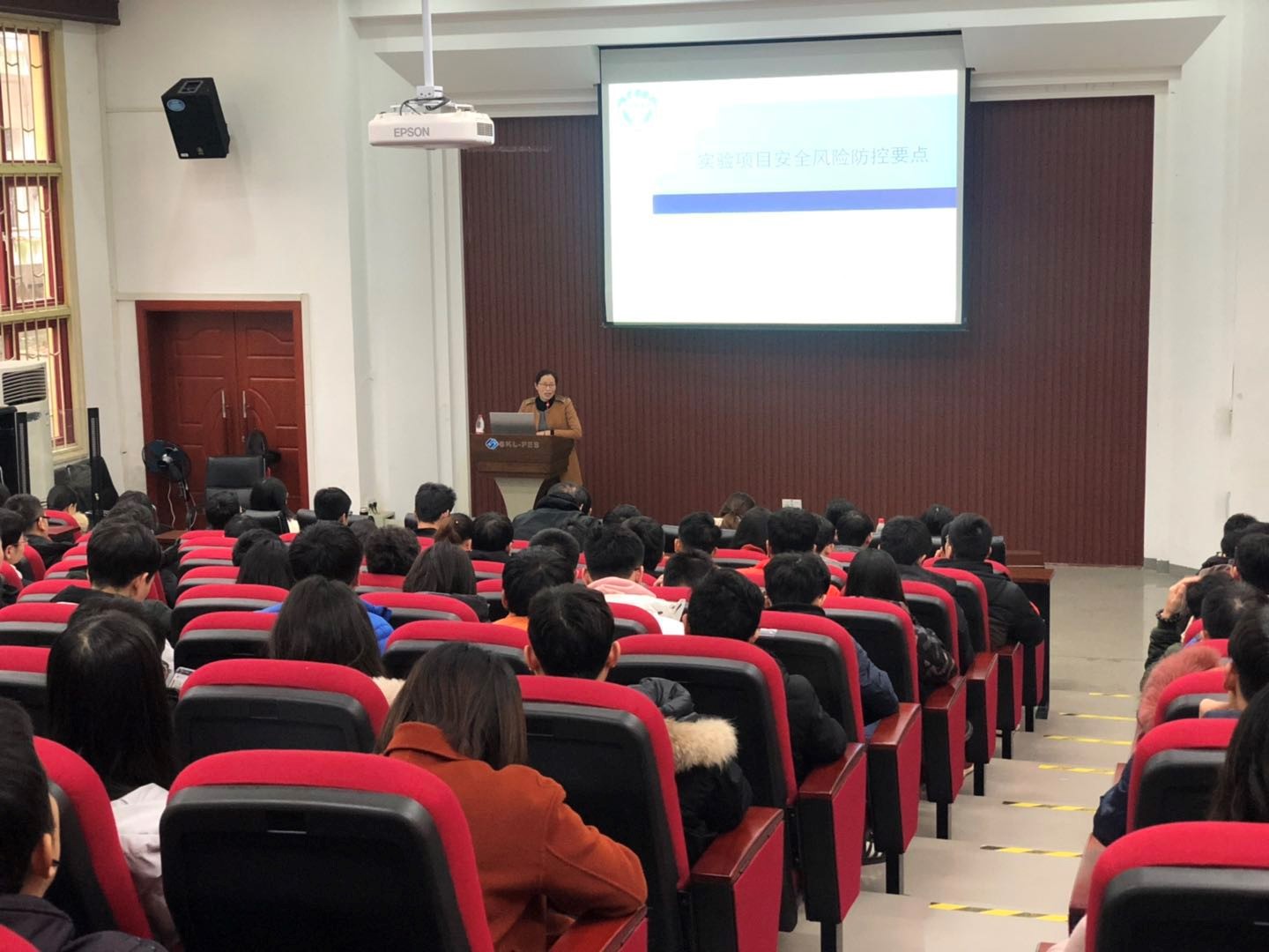 的全体研究生开展了两场关于《实验室项目安全风险防控要点》的专题讲座,从参与实验工作的主体学生角度出发,重点对实验项目风险评估、风险防控、个人防护、应急措施与救援等方面开展讲解,确保在实验室开展实验项目的学生,能正确认识所开展实验室安全风险,并能有效地进行安全防护,杜绝安全隐患。