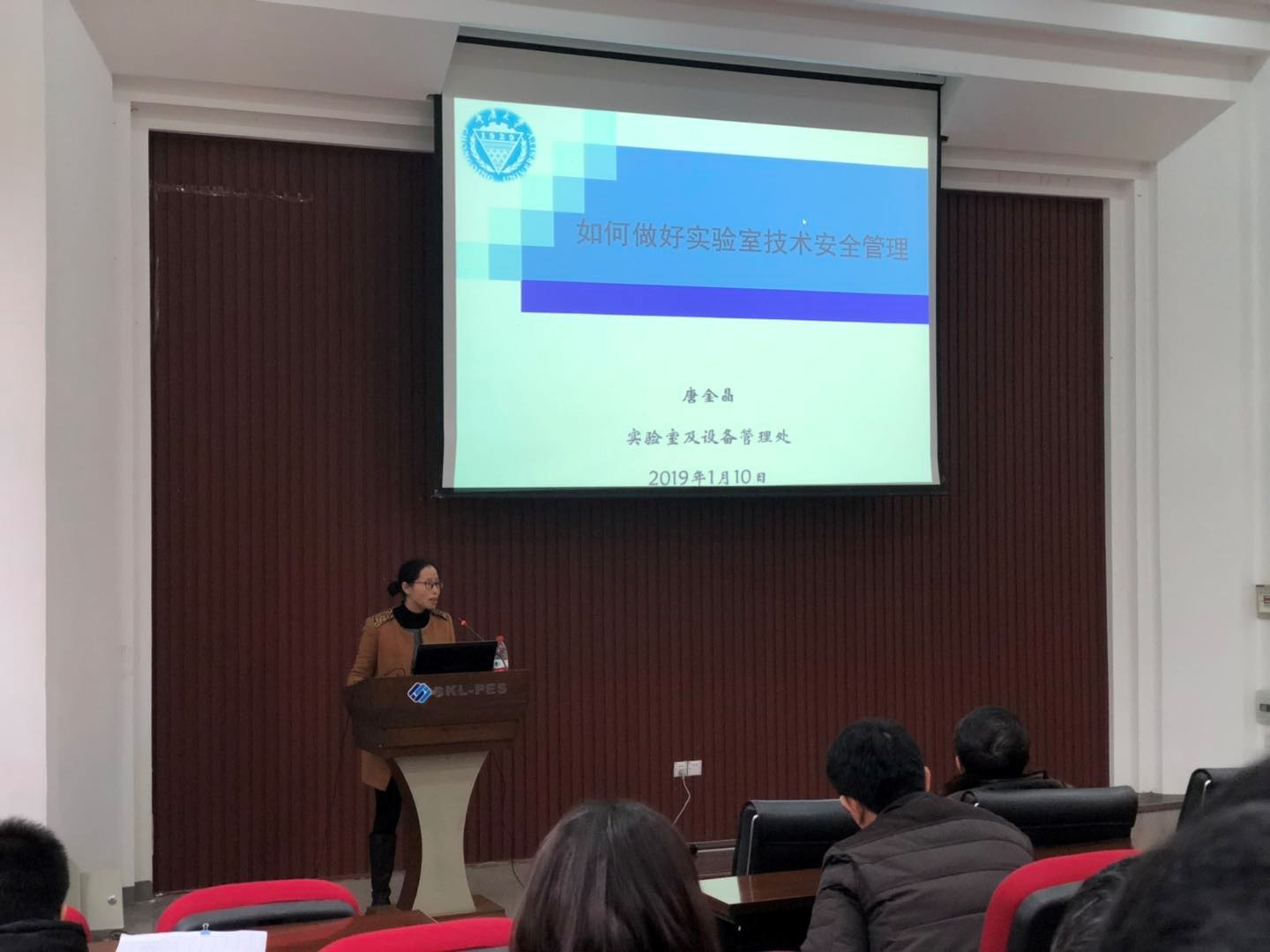 的学科特点,做了题为“如何做好实验室技术安全管理”的报告,详细介绍了教育部和学校关于实验室技术安全的相关制度,以及实验室化学品、气瓶、辐射、特种设备、用电安全等相关管理规定,为使老师们提高安全意识、掌握相关安全知识、明确安全责任做了一场生动的报告。