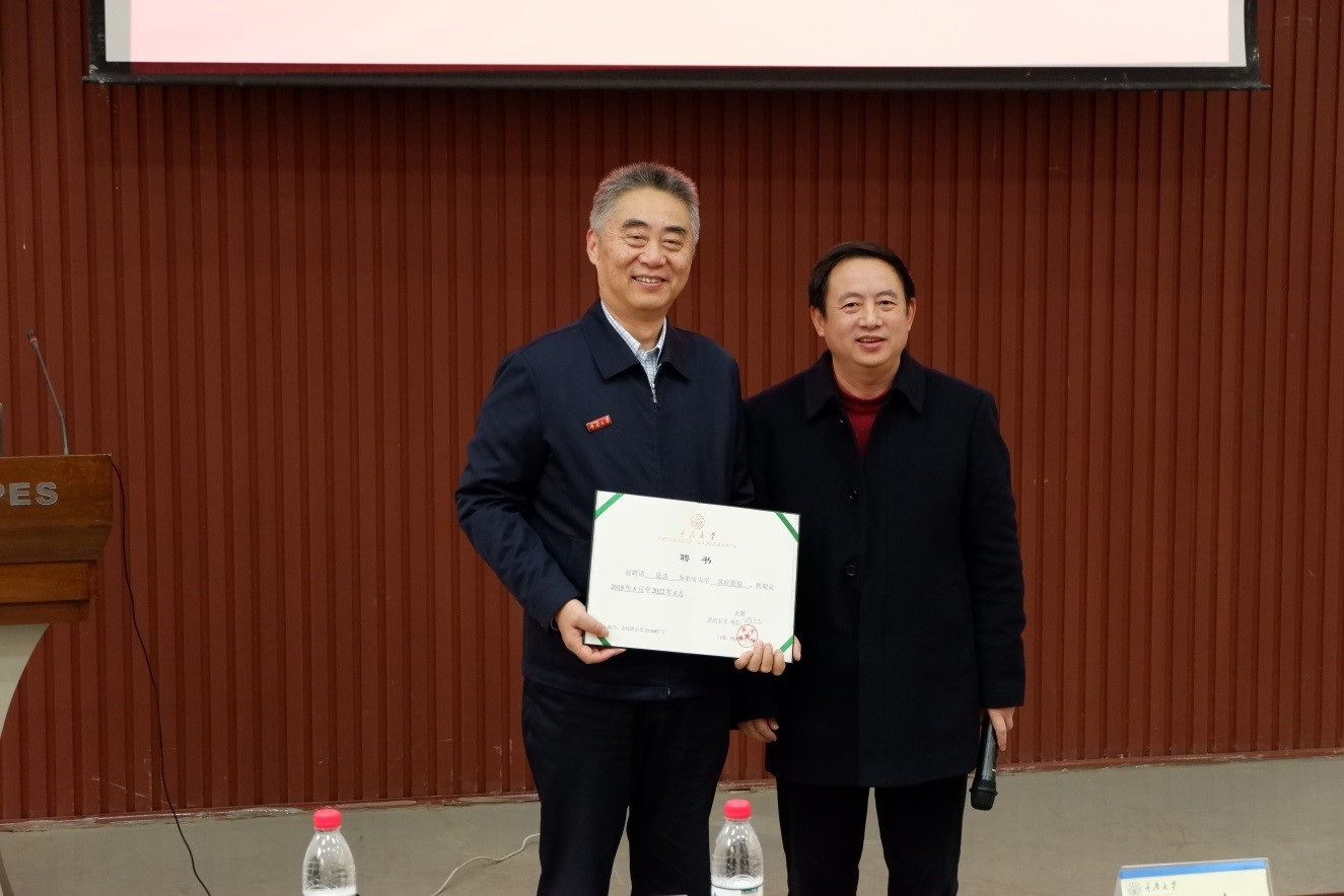 “客座教授”聘书。学院80余名师生参加报告会,重庆大学电力和能源可靠性研究中心副主任余娟教授担任本次学术报告主持人,还有多名重庆电力交易中心的校友慕名而来。