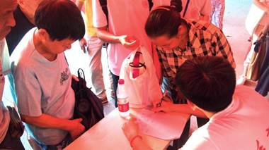 “三下乡”团队青协分队也在广场上为居民们进行防艾知识宣传,让居民们了解防艾,防艾未然。