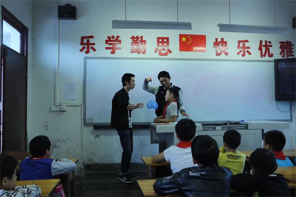 的4名志愿者与电气青协干事一起前往璧山区保家小学开展科技支教活动。这是本学期的第四次支教课程,志愿者们着重以小实验为引,生动讲解了电荷和气压的有关知识,解释了生活中现象,同学们在欢乐中也收获了很多。