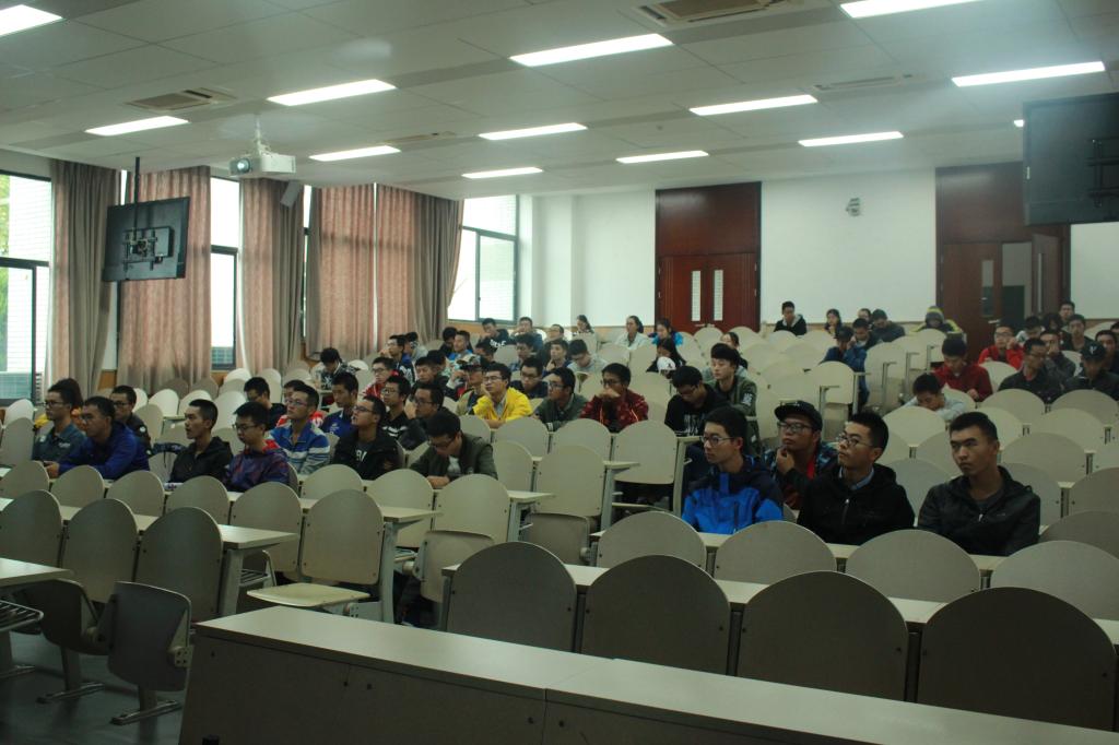 下午14:30,宣讲会正式开始。第一项内容是比赛简介,精彩的往届电赛回顾视频让大家直观的感受到了电子设计大赛的魅力。第二项内容是经验交流,来自重庆大学2014级的杨鸿城进行了简单的自我介绍后,从电赛简介、参赛原因、入门探索、经验分享、答疑过程这五个方面交流。