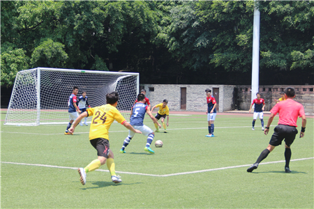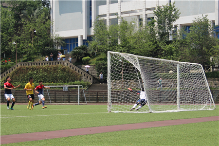 5月26日中午12:30,重庆大学研究生足球联赛淘汰赛次轮在A区团结广场展开,比赛双方是电气学院和材料学院。根据分区,本轮电气、国际、材料三支队伍进行单循环比赛,前两名晋级四强。最终,电气学院凭借4号尹潇和9号王耀的进球以3:1战胜材料学院。