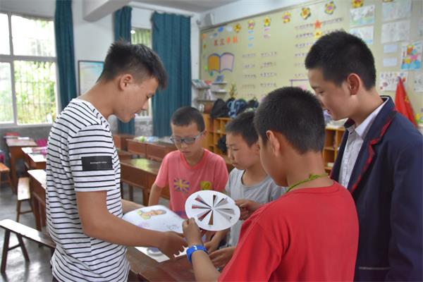 而在大路小学,志愿者则带领孩子们完成了“水球的泳姿”、“纸杯旋转灯”、“瓶内吹气球”等几个小实验,本次支教主题围绕密度、浮力、气压等几个关键词展开,将有趣的实验现象的理论相结合,为小孩子们带来一堂生动的科学课。