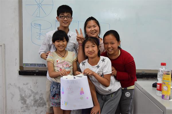 实验伊始,志愿者们拿出早已准备好的实验器材,小朋友们立刻兴奋地围了上来,脸上洋溢着浓浓的兴趣,迫不及待希望开始今天的大实验。然而志愿者们却卖起了关子,“大家听说过跑马灯吗?”孩子们摇摇头,一双双眼睛充满疑惑与期待的看着志愿者,“那我来带大家做几个好不好?”“好!”大实验在孩子们的欢呼声中开始有条不紊的进行。首先,志愿者将各班学生分为三组,每组分发一张A3纸以及若干彩色铅笔让孩子们涂鸦,作为灯侧罩,孩子们积极参与,为白纸绘上了彩色的图案,接下来,又按照比例裁剪出了灯的顶罩。最后,孩子们将志愿者们做好的烛台绑到灯的底座上,在蜡烛释放的热量下,周围空气迅速流动,带动着灯一并转动起来。看着自己做好的跑马灯散发着柔和的光芒,在烛光中缓缓旋转,孩子们兴奋至极,对自己的跑马灯爱不释手,而实用可爱的跑马灯,更是得到了老师和校长的大力赞扬,作为这学期的最后一个实验,跑马灯不仅让孩子们直观的体验了空气受热流速加快的现象,复习了本学期的教学内容,更是在实验中锻炼了孩子们的动手能力,让孩子们在娱乐中学习。