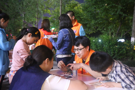 在体验环节,孩子们和社区居民参加了科技趣味实验、交流互动游戏、智力拓展游戏和科技作品体验,主要包括1班“会跳远的乒乓球”和“扑克牌中的铅笔”,2班“你画我猜”和趣味知识竞答,3班拧魔方、解九连环和孔明锁等。