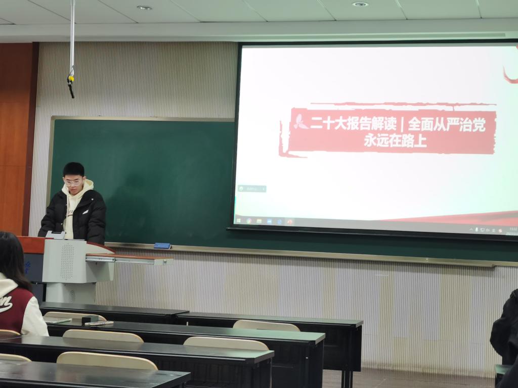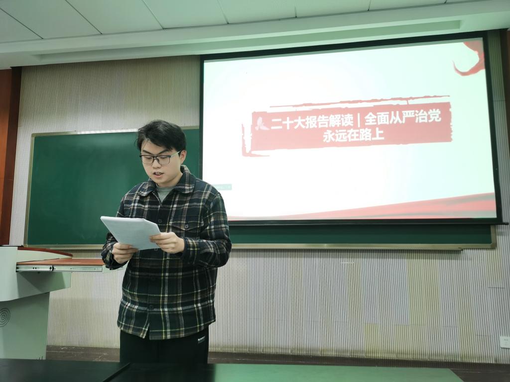 随后,谭兴辰同志向我们介绍在二十大中习近平总书记对于全面从严治党的重要部署,一是时刻保持解决大党独有难题的清醒和坚定;二是以三个“更加突出”,四个“全”为抓手健全全面从严治党体系;要在政治监督的具体化、精准化、常态化上下更大功夫;要把纪律建设摆在更加突出的位置,党规制定、党纪教育、执纪监督全过程都要贯彻严的要求。治国必先治党,党兴才能国强,通过党日活动的学习,全体同志对全面从严治党的理念都有了更深刻的理解。