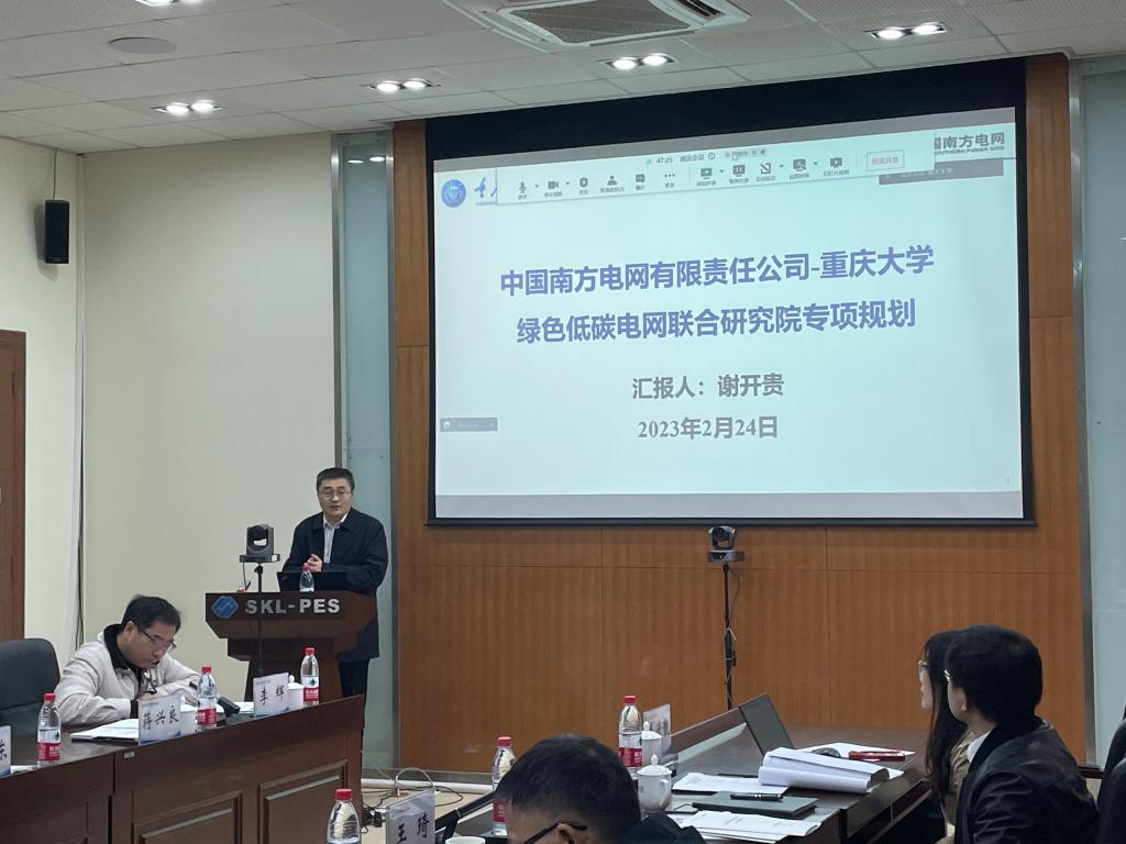 2023年2月24日,中国南方电网公司-重庆大学绿色低碳电网联合研究院(以下简称“联合研究院”)管委会第一次会议在重庆大学A区第六教学大楼6119会议室以“线上+线下”相结合方式召开。管委会主任、南方电网专家委员会副主任余建国,南方电网创新管理部副总经理许树楷、重庆大学党委副书记冯业栋等出席会议。会议由管委会主任余建国主持。
