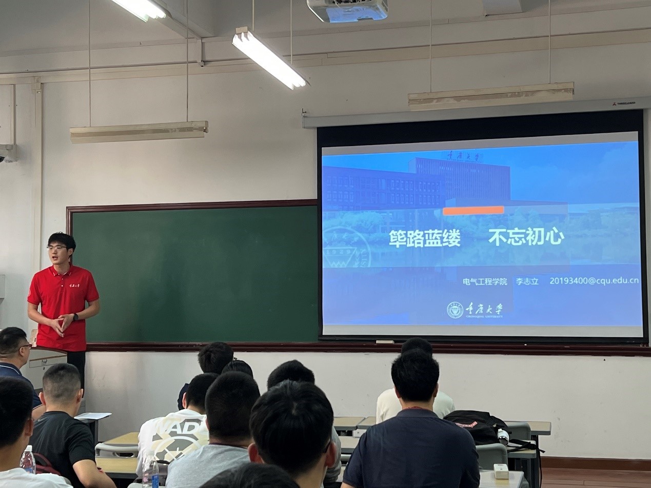 而后来自2019级电气工程及其自动化专业的李志立同学,为同学们分享了他的大学生活,现身说法了从高中到大学的多维度转变,树立了优秀的典范,让同学们对即将到来的大学生活充满憧憬。