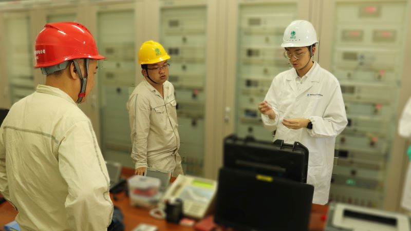 在武隆仙女山变电站现场,实践队成员对110kV变压器绝缘油进行取样,运用便携式能源电力装备状态拉曼光谱智能诊断仪对油样本进行检测和老化诊断,最终快速判断变压器油纸绝缘的老化阶段。