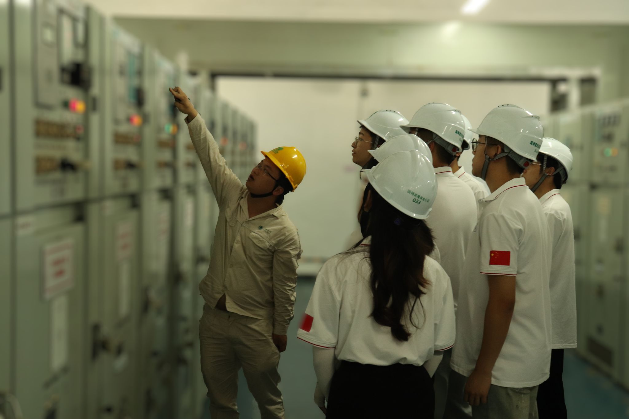 接下来,肖工带领实践队成员们来到了10kV开关室,向同学们讲解了夏季用电负荷攀升背景下,工作人员进行电力系统负荷调节时断路器、隔离开关、电流互感器、电压互感器等设备所起到的作用。