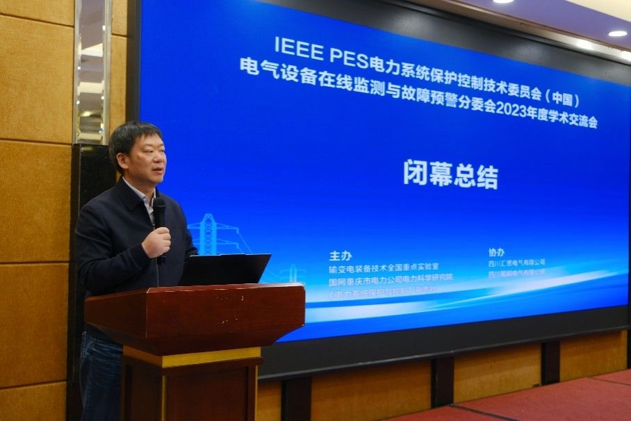 2023年12月2-3日,IEEE PES电力系统保护控制技术委员会(中国)电气设备在线监测与故障预警分委会2023年度学术交流会,在山城重庆成功落下帷幕。本次会议由重庆大学输变电装备技术全国重点实验室、国网重庆市电力公司电力科学研究院、《电力系统保护与控制》杂志社共同承办,四川汇思电气有限公司、四川蜀瞬电气有限公司协办。会议旨在分享电气设备在线监测与故障预警领域的研究与实践,推动电气设备在线监测、故障预警、电力系统风险识别与安全防控技术水平的发展,助力我国新型电力系统建设。本次会议,有来自清华大学、上海交通大学、西安交通大学、华北电力大学、武汉大学、重庆大学等20余家高校,国网西南分部、国网重庆市电力公司、中国电科院、南方电网、南瑞继保、许继电气等20余家电力生产运行与设备制造单位,共计110余人参加。